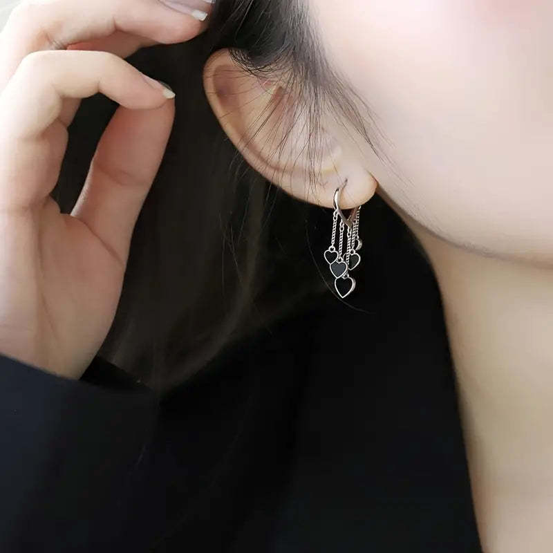 Chic and Trendy: Black LOVE heart tassel earrings are perfect for fashion-forward women and girls.