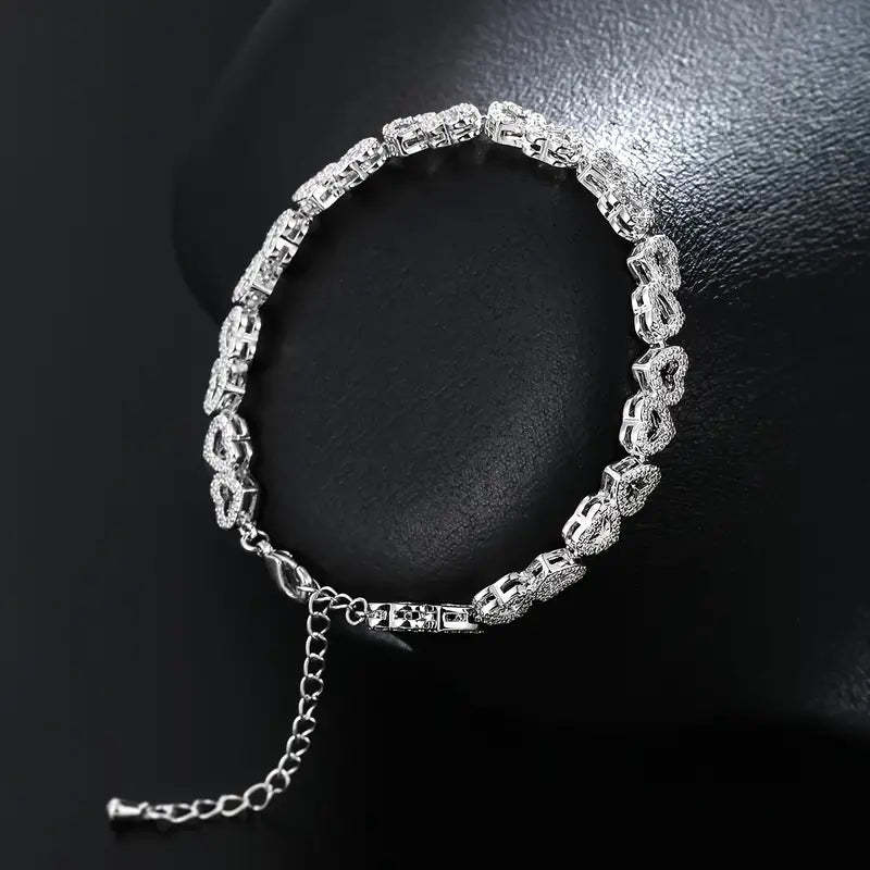 Elegant Shining Cubic Zirconia Heart Bracelet