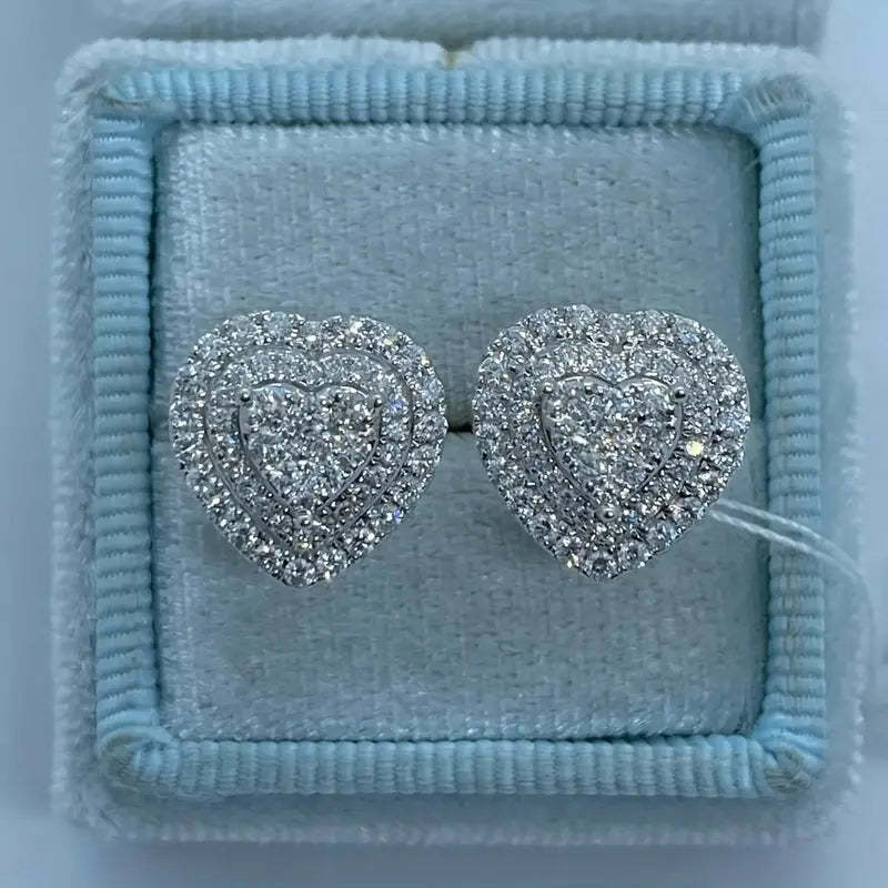 Heart Shape Zircon Inlaid Design Copper Earrings