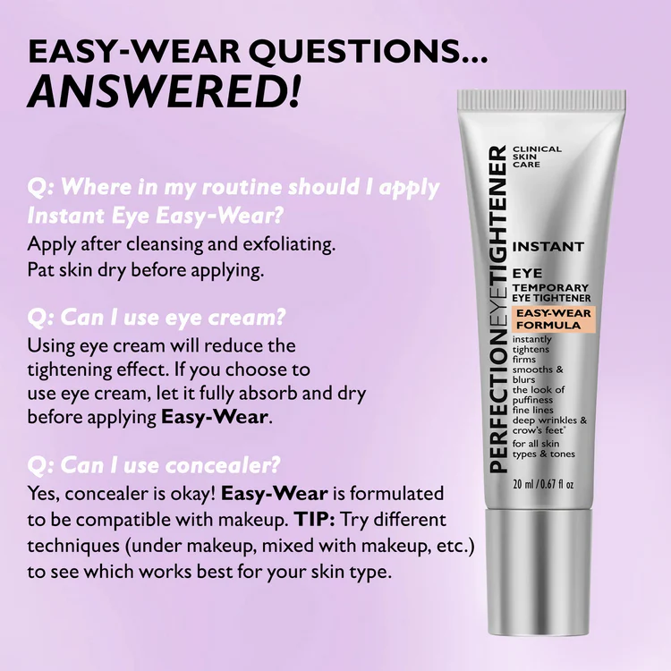 <br>Thisinstant eye tighteneris your go-to solution for visibly firmer, smoother, more youthful-looking eyes in minutes. Clinically proven to reduce puffiness, fine lines, deep wrinkles, and crow’s feet, it uses fast-acting Firm-A-Tite™ technology and peptides to deliver immediate and long-term benefits. Lightweight and comfortable, it applies easily, wears seamlessly under makeup, and delivers all-day results—no tight feeling, no residue, just visibly lifted eyes.